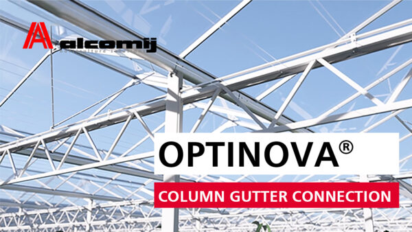 Binnen het Optinova® kasdeksysteem levert Alcomij een slimme aluminium kolom gootverbinding die zonder laswerk wordt gemonteerd. Dit maakt de installatie sneller, veiliger en betrouwbaarder, terwijl de constructie bestand blijft tegen zware windbelasting